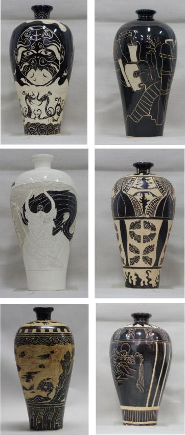 从课堂上的文字陶瓷史到博物馆的实物陶瓷史;从基础课上的图案、装饰画、国画到瓷器上的肌理与形态、线条与色彩;从满是专业术语、元素算式的陶瓷工艺学,变成看得见摸得着的泥、坯、釉、烧手工制瓷技艺实训;思维随着视野在不停地变化。在博物馆中一件件被岁月洗礼的古陶瓷器物上,在陶瓷古窑址结晶千年的窑汗上,在民间作坊与大师工作室充满阳光与自信的非遗传承人笑脸上,在机械化加工车间的流水线上,学生们忘记了旅途奔波的疲劳,也不再怀念辣椒与米粉的味道,或凝视、或沉思、或兴奋。短短十天,如历千年。心灵在泥与火的交融中得到净化,灵感在目光与泥坯的触碰中自由迸发,或釉彩飞舞,或刀泥四溅,或凝神静气,原本素色的花瓶、瓷盘、瓷板、碗等,在陶艺学子们的手中幻化为一件件五彩斑斓的作品。