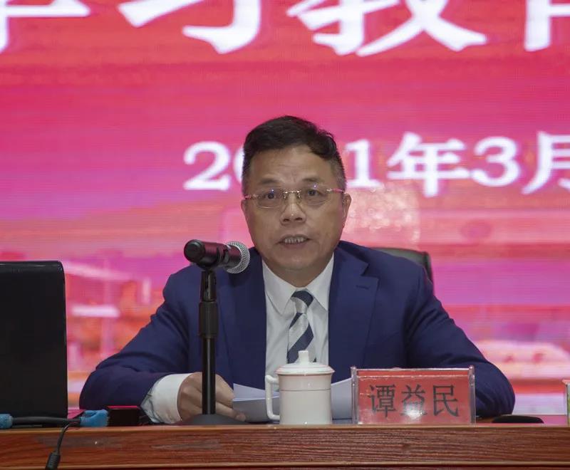 谭益民指出,习近平总书记在党史学习教育动员大会的重要讲话,全面阐述了开展党史学习教育的重大意义、总体要求、目标任务和重点措施,对新时代学习党的历史,弘扬党的传统,开启新的征程,创造新的伟业,作出了重要部署,为我们开展好党史学习教育指明了方向,提供了根本遵循。召开学校党史学习教育动员大会,就是要深入学习习近平总书记在党史学习教育动员大会上的重要讲话精神,对标对表中央省委要求,进一步提高政治站位,进一步统一思想,把党史学习教育作为学校重大政治任务,高标准严要求深入推进党史学习教育。