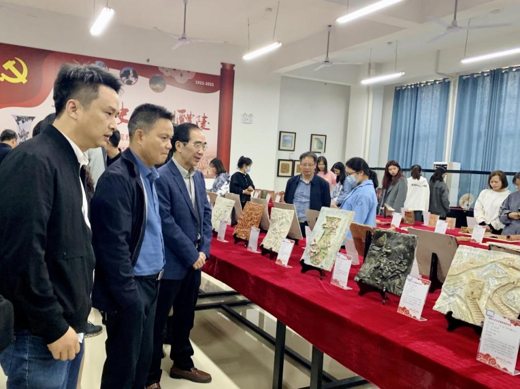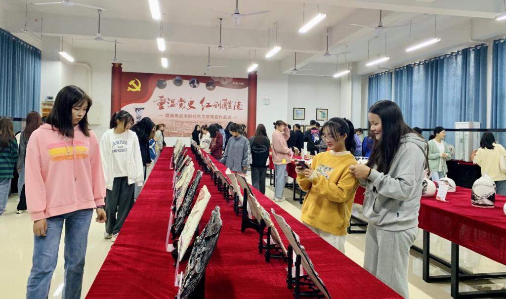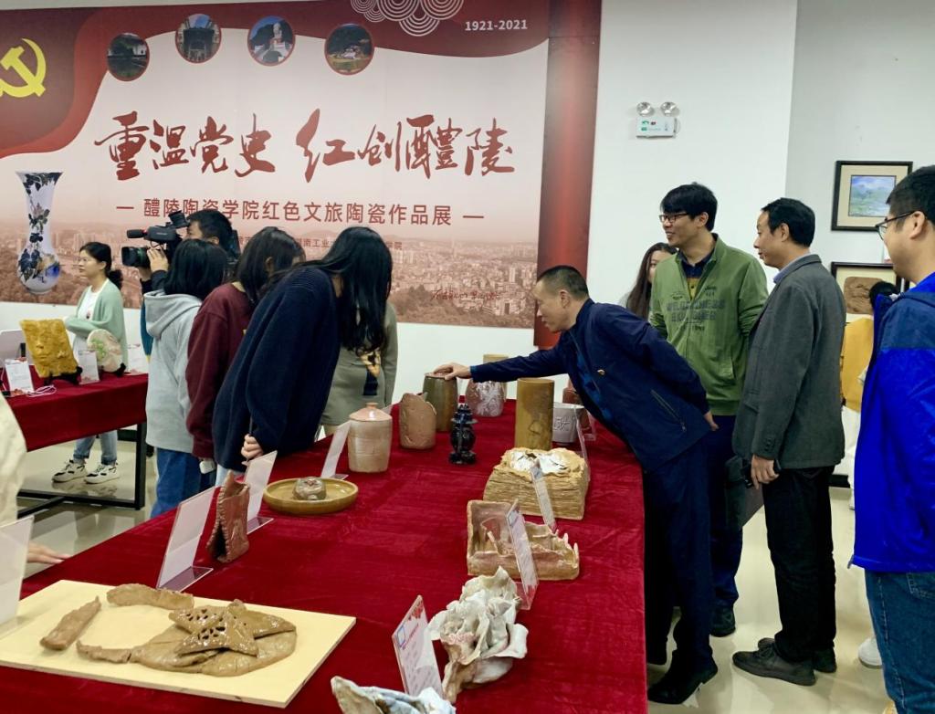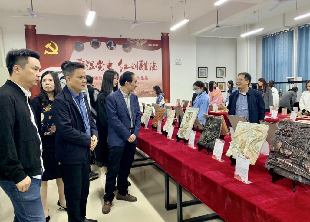 10月13日,历时近五个月,由醴陵市委宣传部和湖南工业大学醴陵陶瓷学院联合主办的“重温党史 红创醴陵红色文旅陶瓷创作主题作品展”开幕式暨颁奖大会在学院实训楼前坪隆重举行。本次展览是我院设计类专业的师生结合党史学习教育开展的一项专题实践活动,通过对渌江书院、李立三故居、左家老屋、耿传公祠四个醴陵红色文化主题教育基地进行为期4个多月的实地采风、主题构思与创作实践,聚焦醴陵红色文化、红色精神、红色基因,将专业课程学习与党史学习教育相结合,创作完成了105件陶艺、浮雕、绘画等类别的陶瓷作品。