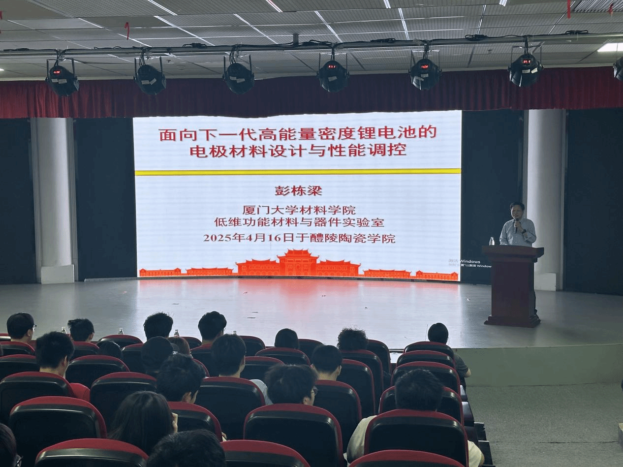 16日下午,湖南工业大学醴陵陶瓷学院图书馆报告厅内学术氛围浓厚,厦门大学南强特聘教授、材料学院原院长彭栋梁应邀做客“名家大讲堂·科创未来”系列活动第七十二讲,以“面向下一代高能量密度锂电池的电极材料设计与性能调控”为题,带来了一场聚焦新能源领域前沿的精彩报告。