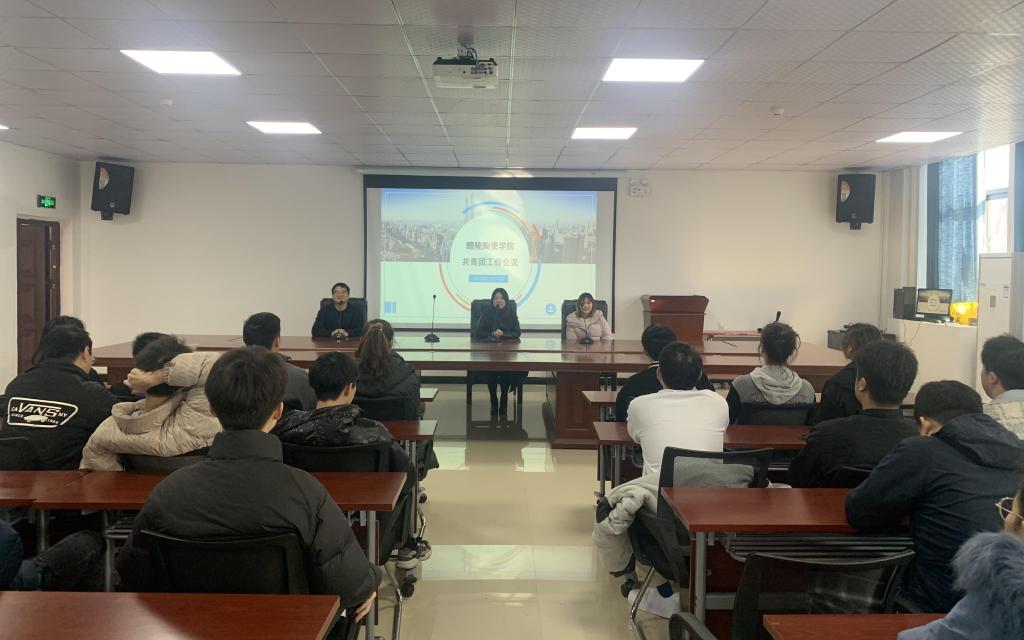 12月13日下午,醴陵陶瓷学院2021年度共青团工作专题会议在实训楼211会议室举行,院党总支书记曾欧、辅导员李惠、学院全体团学干部参加,会议由团总支书记钟记超老师主持。