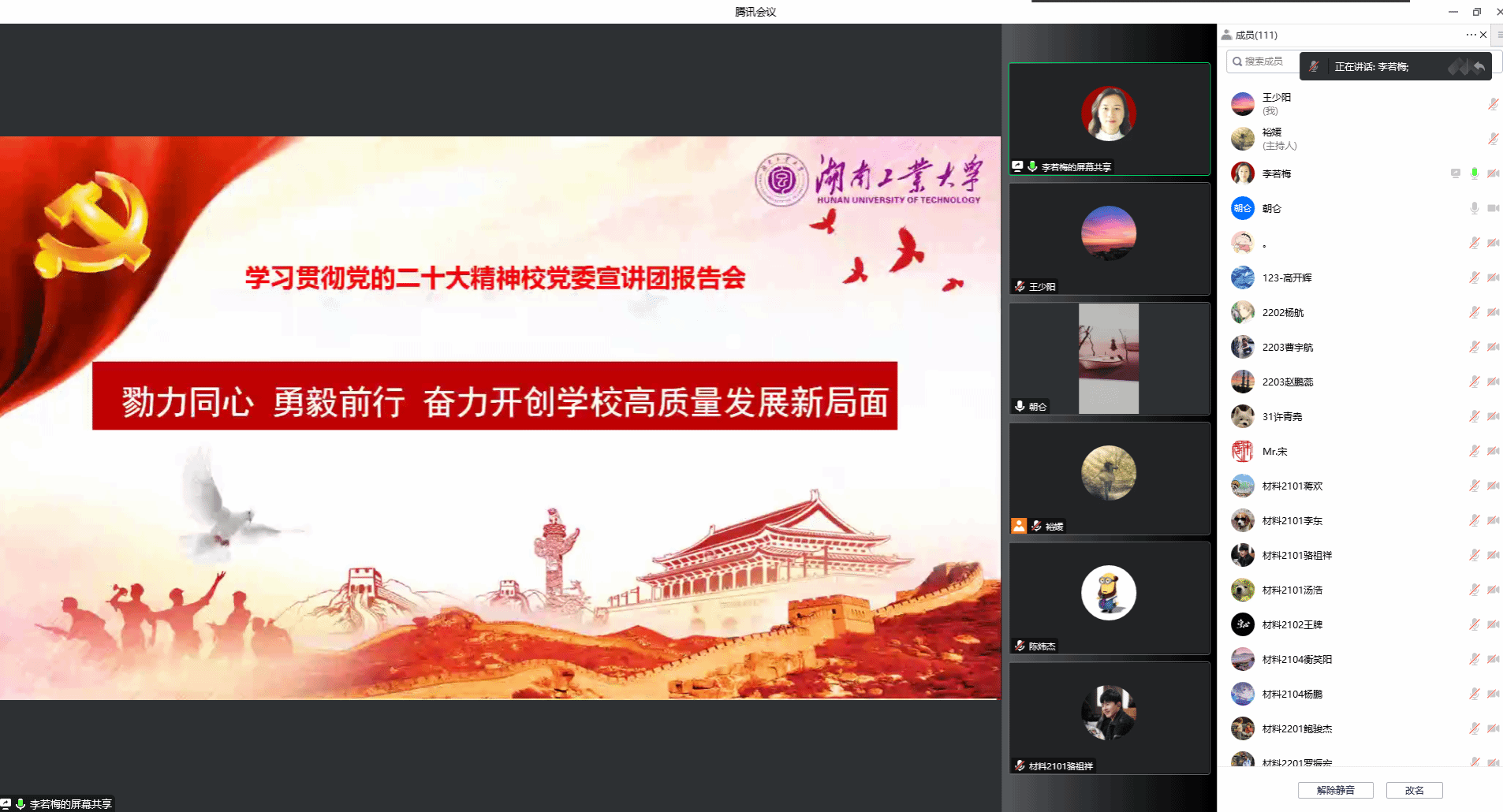 为持续深入学习贯彻党的二十大精神,引导思想和行动统一到党中央决策部署上来,12月26日,校党委委员、副校长李若梅开展党的二十大精神主题宣讲会,醴陵陶瓷学院全体党员、入党积极分子、学生代表参加了此次宣讲会,宣讲会以远程视频会议的方式召开。