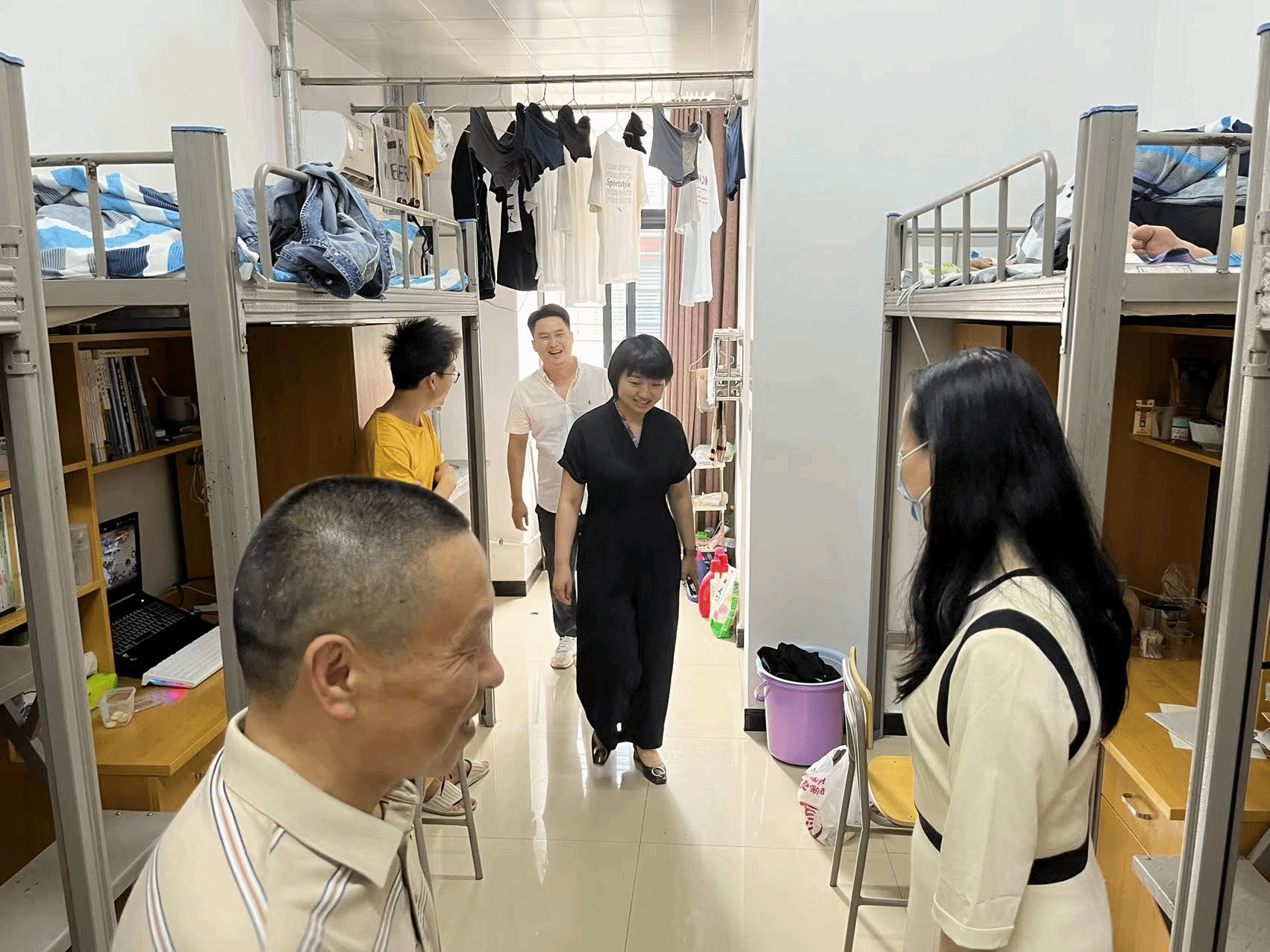 会前,何彩凤一行实地考察了校区食堂、学生宿舍、教师公寓、教室、实验室等处。