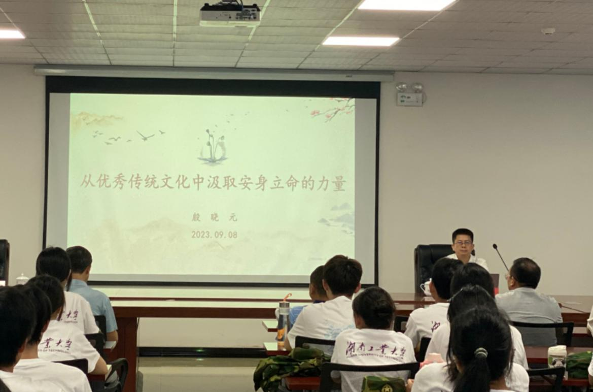 9月11日下午,校党委委员、副校长殷晓元教授为我院师生作题为《从优秀传统文化中汲取安身立命的力量》专题讲座。醴陵陶瓷学院党总支书记曾欧主持讲座。