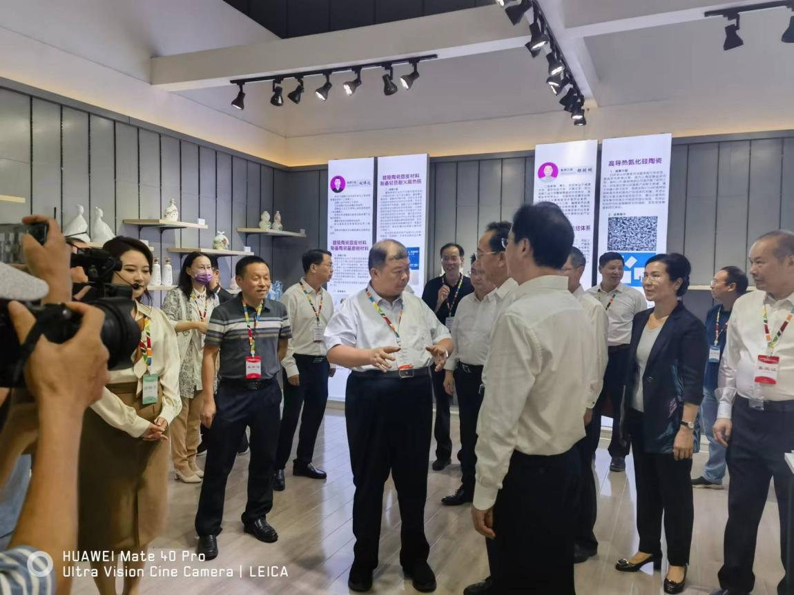 博览会期间,刘望书记亲临展馆,对学院此次的展览给予了充分肯定,并亲自为巡馆的省市领导介绍学院办学成果,其中学院陶瓷材料博士团队的先进陶瓷研发成果引起了省市领导的高度关注,并就相关成果的产业化落地、科教融合等方面与刘望书记进行了深入交流。同时,我院展位上各种富有创新设计元素的陶瓷作品也吸引了大家的目光,与会嘉宾纷纷驻足观看,赞不绝口,不少企业向我院提出了合作意向。
