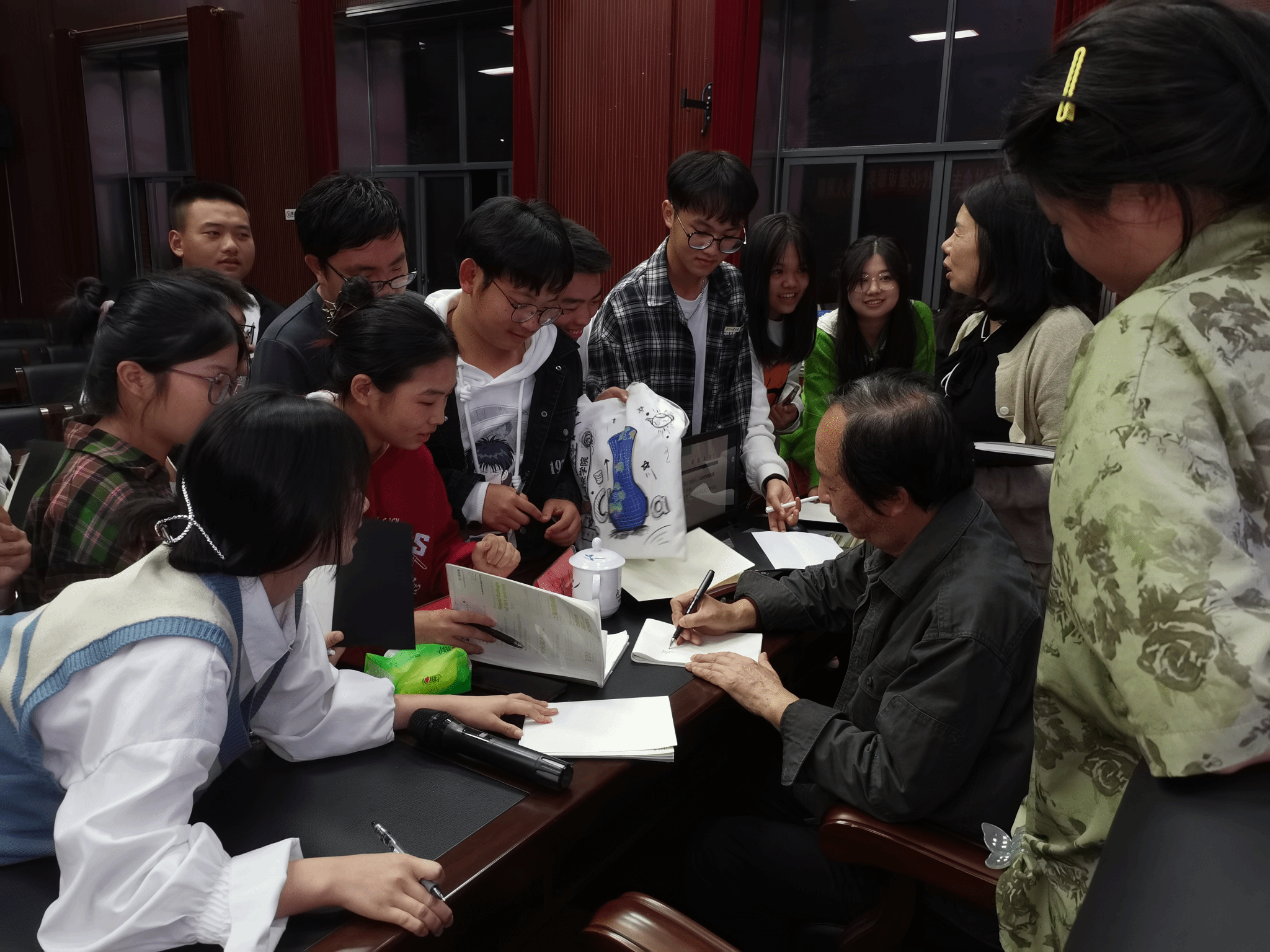 讲座结束后,现场师生纷纷要求田明教授签名留念。