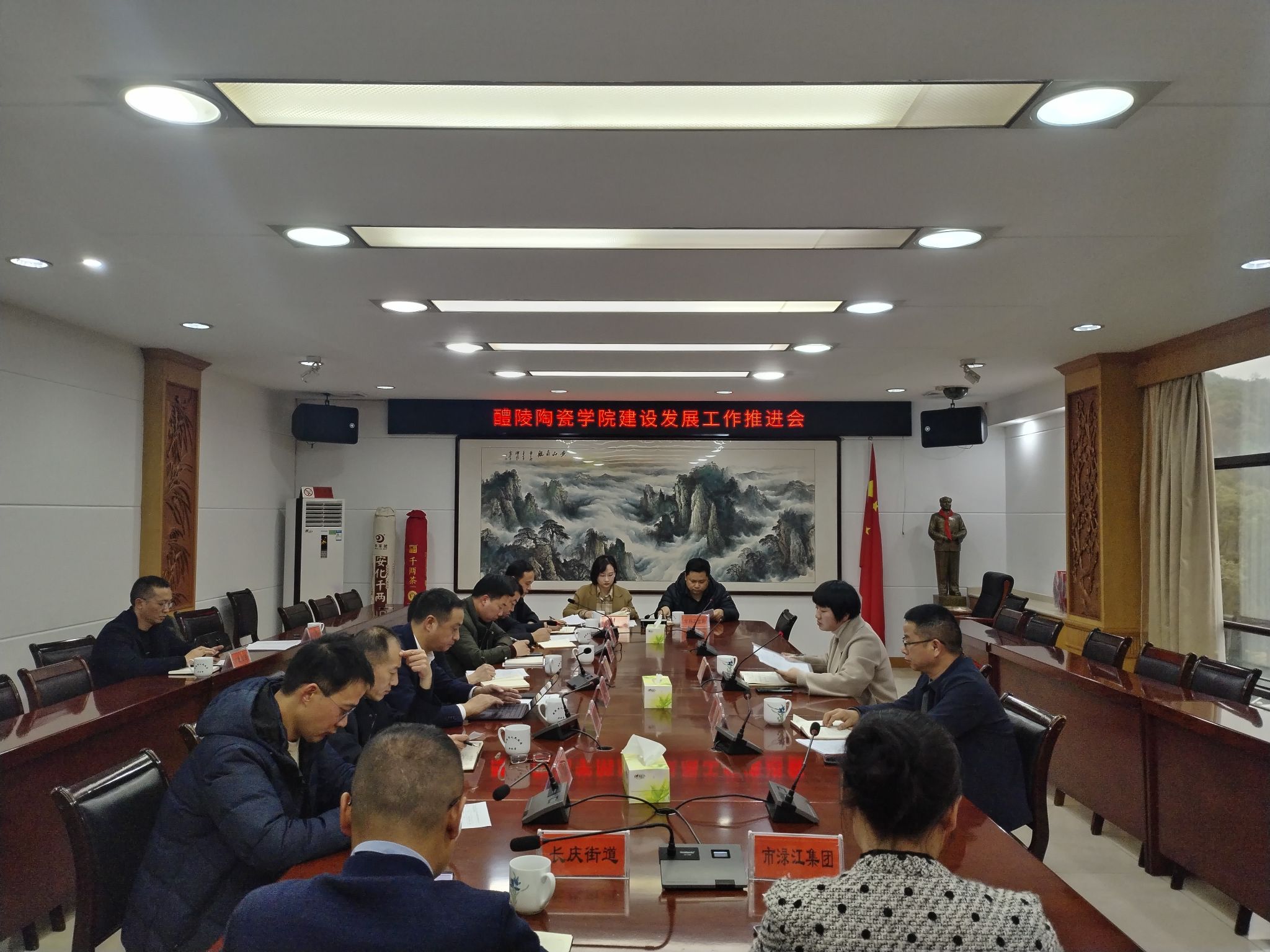 为深化校地合作,推进醴陵陶瓷学院发展,2024年1月2日下午,醴陵市人民政府党组成员、何彩凤副市长组织召开醴陵陶瓷学院建设发展工作推进会。市政府办、教育局、财政局、自然资源局等相关部门参加会议。