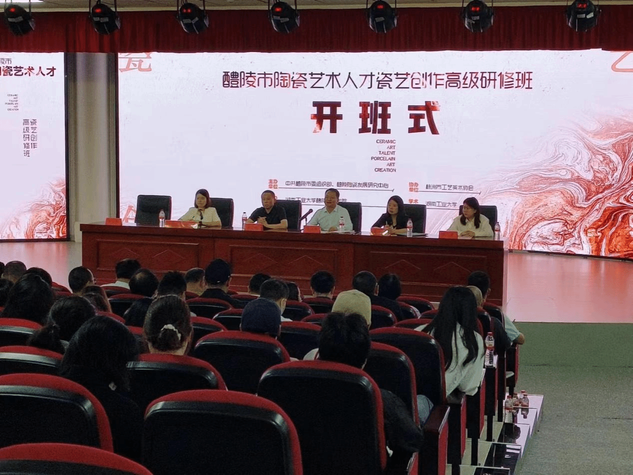 为加强醴陵陶瓷界人才队伍建设,提升中青年陶瓷艺术创作与理论研究水平,提高学员政治站位、思想境界、道德境界及文化素养,为醴陵市陶瓷产业发展提供强有力的人才保障。由市委组织部、醴陵陶瓷发展研究中心主办,湖南工业大学醴陵陶瓷学院承办,株洲市工艺美术协会协办的陶瓷艺术人才瓷艺创作高级研修班于5月13日上午在湖南工业大学醴陵陶瓷学院报告厅举行开班仪式。醴陵市委常委、组织部长雷江华,醴陵陶瓷学院党总支书记曾欧,院长易小斌及高研班全体学员参加开班式。开班式由醴陵陶瓷发展研究中心党组副书记、副主任徐瑾主持。
