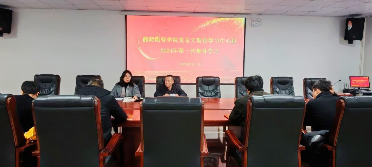 党总支副书记、院长易小斌领学国家主席习近平发表的二〇二四年新年贺词及习近平总书记2023年12月29日在全国政协新年茶话会上的讲话,院长强调,要进一步深入学习贯彻习近平总书记重要讲话精神,切实把思想和行动高度统一起来;要以习近平总书记重要讲话精神为指引,牢记政治责任,紧紧围绕中心服务大局,加强醴陵陶瓷学院自身建设。党总支委员、副院汤志勋领学《以美丽中国建设全面推进人与自然和谐共生的现代化》。