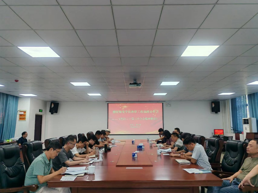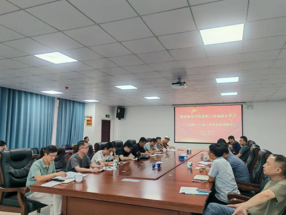 为持续深入学习贯彻习近平新时代中国特色社会主义思想,促进学院高质量发展,2024年9月1日,醴陵陶瓷学院在实训楼211会议室召开了“党的二十届三中全会精神解读”为主题的全院教职工政治理论学习,院长易小斌主讲,学院全体在职教职工参加学习。
