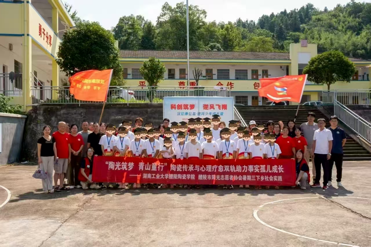 7月4日—11日,学院组建了以党员、入党积极分子为主的志愿者在青山村开展社会实践活动,组织事实孤儿参与陶瓷的制作,跟随志愿者学习泥条盘筑等工艺;增强其自信心与成就感。在心理疗愈层面,以 “陶瓷艺术疗愈工作坊”为载体,通过捏塑创作释放情绪,借团队协作拉坯培养信任感;同时开设“心灵陶艺课堂”,结合陶瓷文化中的匠人精神,引导孩子们树立积极人生观。通过文化浸润与技能培养双管齐下,助力事实孤儿实现物质与精神的双重成长。同时开展墙绘制作、资助下乡宣传等,助力乡村扶贫。