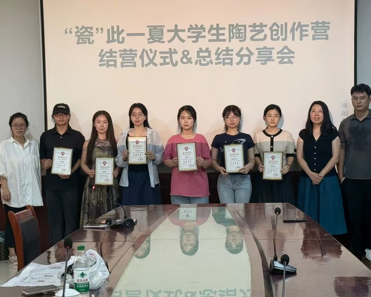 8月1日-18日,学院组建了以党员、入党积极分子为主的陶艺创作营,成员学员们深入走访国瓷振美、醴泉窑、陶润会等单位,现场观摩陶艺大师的创作,聆听大师分享创作心得,然后学员们以1915街区为中心点开展个性化的创作,学员们创作出的融合釉下五彩技艺与现代审美的作品,让千年非遗在青春视角中焕发新活力。